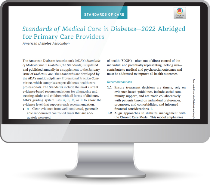 2022 ADA Standards of Care in Diabetes – abridged for Primary Care Physicians